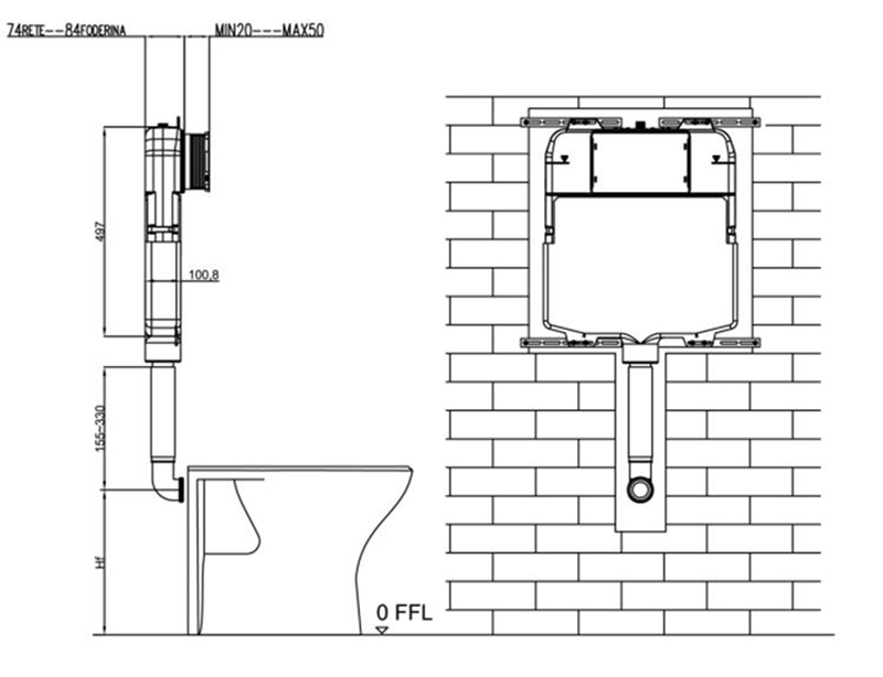 raccordo per serbatoio dell'acqua del water del bagno in plastica nascosta