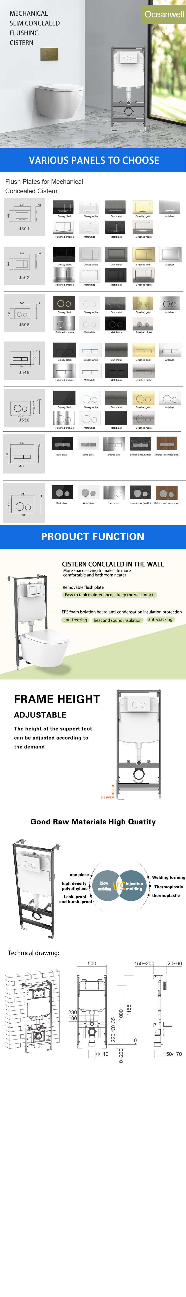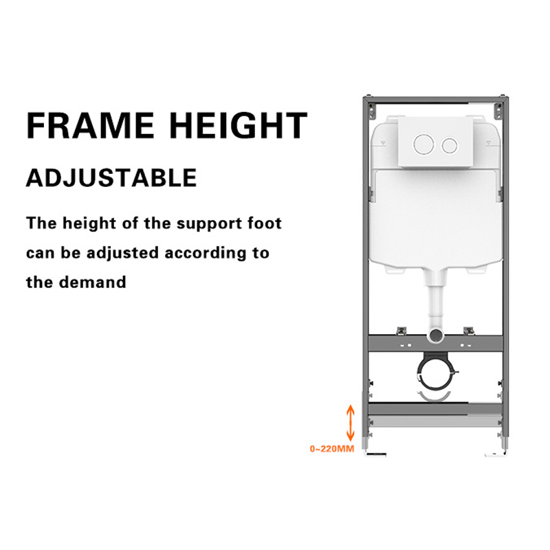 17.3Spessore della cassetta 90mm a scomparsa nel muro con telaio universale per WC sospeso con doppio scarico.