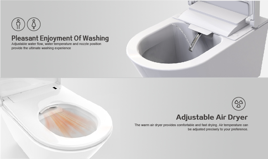 Integrando tutti i componenti elettronici direttamente nella tazza, il WC intelligente E402 di Oceanwell elimina la necessità di ingombranti unità esterne. Dite addio ai tradizionali sedili in porcellana fredda e date il benvenuto a un comfort compatto e igienico, risparmiando fino al 30% di spazio in bagno. Godetevi l'igiene e il comfort di un bagno moderno.