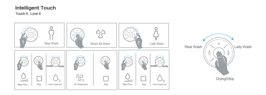 • In base al contesto: modalità silenziosa notturna, regolazione dell'acqua attivata dal riscaldamento del sedile